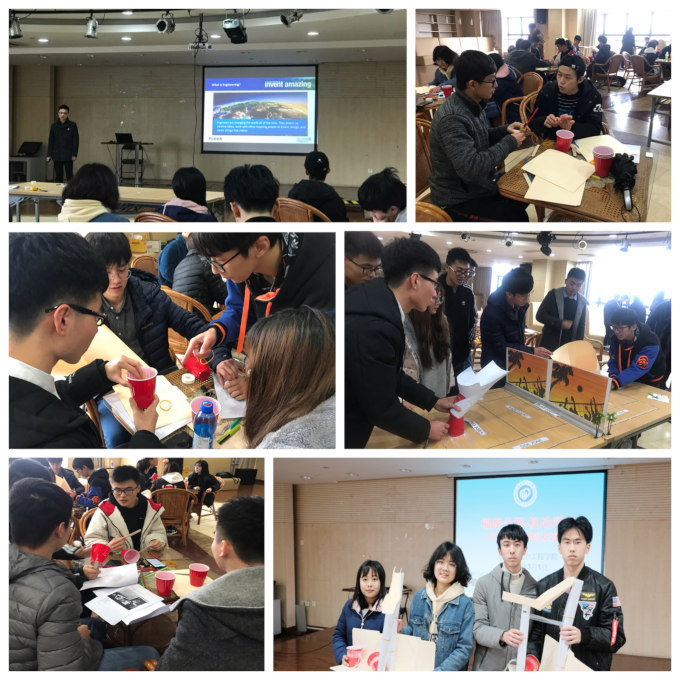 活动伊始,公司消防工程师孙梦雨、管道工程师尹祎轩介绍了公司基本情况。随后,在福陆公司工作的我校校友陈亮、尹祎轩就工程设计、工程建设等方面与同学们进行了互动交流。在公司专业人员的带领下,来自学校各专业六支团队的同学们在破冰活动中相互熟悉并共同完成了小组任务。该比赛要求多人组队参赛,要求学生自行设计、自选材料,独立制作出比赛道具,把乒乓球像排球那样打过球网,然后对面把它击回来,直至某一方无法把球打进对面的场地,成为精彩的“排球比赛”。在比赛的过程中,所有参赛队伍经过前期充分的准备,都尽力让自己的作品脱颖而出。经过激烈的角逐,最终“华理梦之队”、“小齿轮队”和“扬帆一号”三组参赛队伍依次获得本次比赛一、二、三名,公司为所有参赛的队伍发放了奖品。