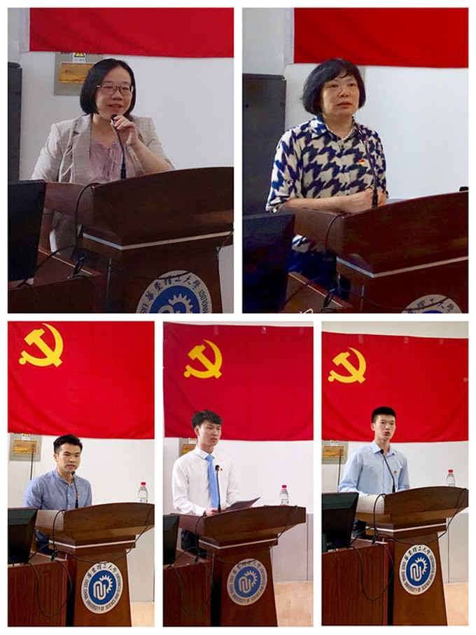 随后,孙明从如何开好党组织关系介绍信入手,详细讲解了党员党组织关系转移等相关注意事项,提醒学生按时做好组织关系的转接。我校“优秀学生共产党员”、材控152班周相阳宣读了“文明离校倡议书”,倡议广大毕业生党员站好最后一班岗,协助老师做好毕业离校相关工作。在周相阳的带领下,全体党员重温了入党誓词,进一步明确作为社会主义建设者和接班人的学生党员们,应始终铭记党员责任与义务,增强身为党员的光荣感和使命感。