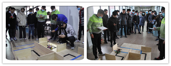 本次大赛前期经过2个月的准备和预赛,比赛分为手动组和自动组两个级别,手动组仅限大一学生,比赛以遥控的方式收集并携带赛道上设置的“垃圾”躲避障碍和卸载在规定的区域,比赛时长3分钟,以卸载“垃圾”数量、躲避障碍数目作为评分标准。自动组比赛由大一和大二学生共同组队参加,比赛要求小车根据编写的程序自动进行循迹,收集和携带赛道上设置的“垃圾”,躲避障碍和卸载在规定的区域,比赛时长5分钟,以卸载“垃圾”数量、躲避障碍数目作为评分标准。