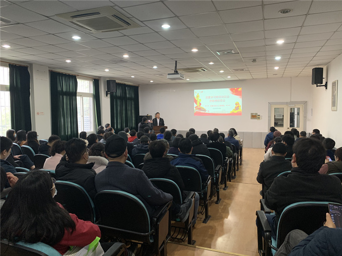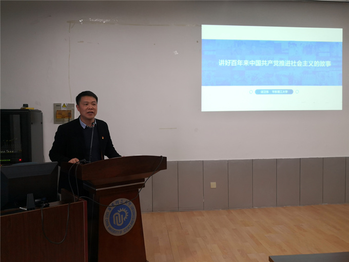 为深入学习贯彻习近平总书记在党史学习教育动员大会上的重要讲话精神,按照学校部署安排,3月16日下午,yl88858cc永利官网在徐汇校区实验10楼301室召开党史学习教育动员会暨首场报告会。马克思主义学院党委副书记、副院长邱卫东副教授受邀作了题为“讲好百年来中国共产党推进社会主义的故事”专题辅导报告,yl88858cc永利官网全体教职工参加。报告会由yl88858cc永利官网党委书记杨强主持。