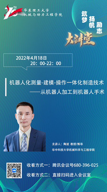 报告题目:机器人化测量-建模-操作一体化制造技术——从机器人加工到机器人手术
