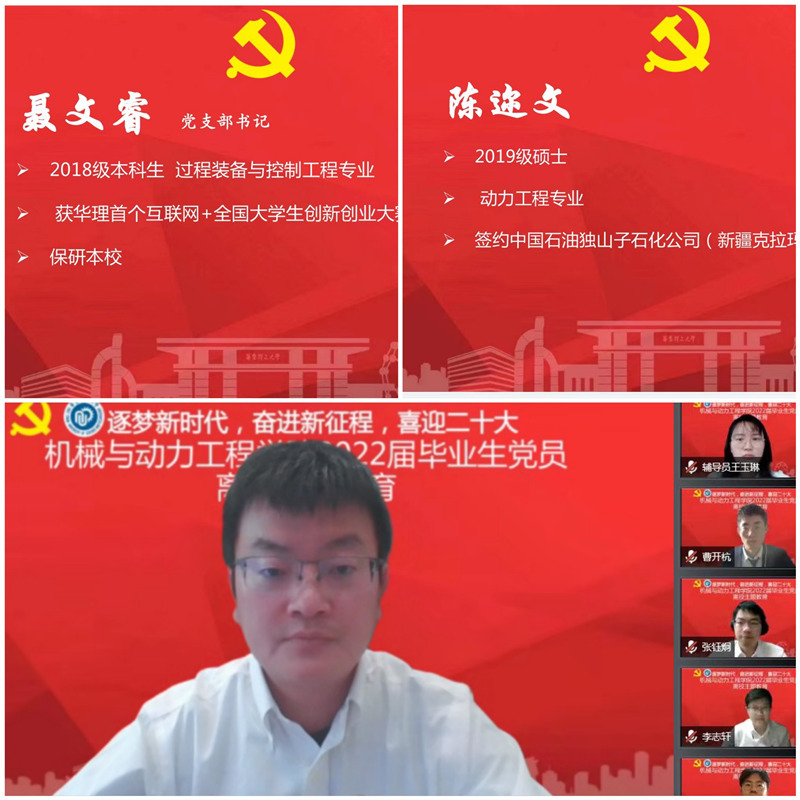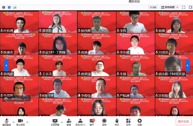 为进一步激发毕业生党员爱党爱国爱校情怀,增强党员使命担当,5月23日,yl88858cc永利官网举办主题为“逐梦新时代,奋进新征程,喜迎二十大”的毕业生党员离校线上教育活动。学院党委书记杨强,副院长陈建钧,机械工程系副主任李锦以及139名毕业生党员等参加活动。活动由党委副书记李煜佳主持。