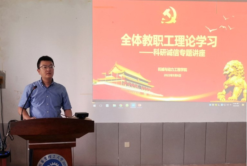 学院党委书记杨强作总结讲话,他指出,科研诚信是科技创新的基石,也是对广大老师、科技工作者坚守科技报国初心、勇担科技强国使命的必然要求。他希望我们各位老师充分认清科研诚信的极端重要性和存在问题危害的严重性,坚持弘扬科学、严谨、求实、诚信的科研作风,做科研诚信的自觉践行者,努力把科研领域建成求实之圣地、诚信之典范。最后,他强调了近期学校疫情防控工作的具体要求,要求全体师生自觉遵守疫情防控要求,全力守好校园安全保卫底线。