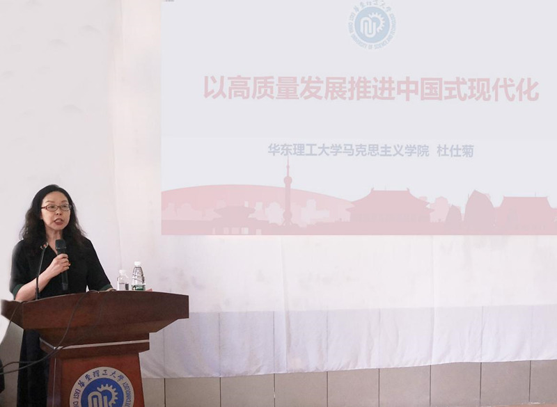 5月23日下午,yl88858cc永利官网邀请我校马克思主义学院杜仕菊教授在徐汇校区实验十楼多媒体室作题为“以高质量发展推进中国式现代化”的主题教育专题辅导报告。yl88858cc永利官网全体教职工参加学习。报告会由yl88858cc永利官网党委副书记李煜佳主持。