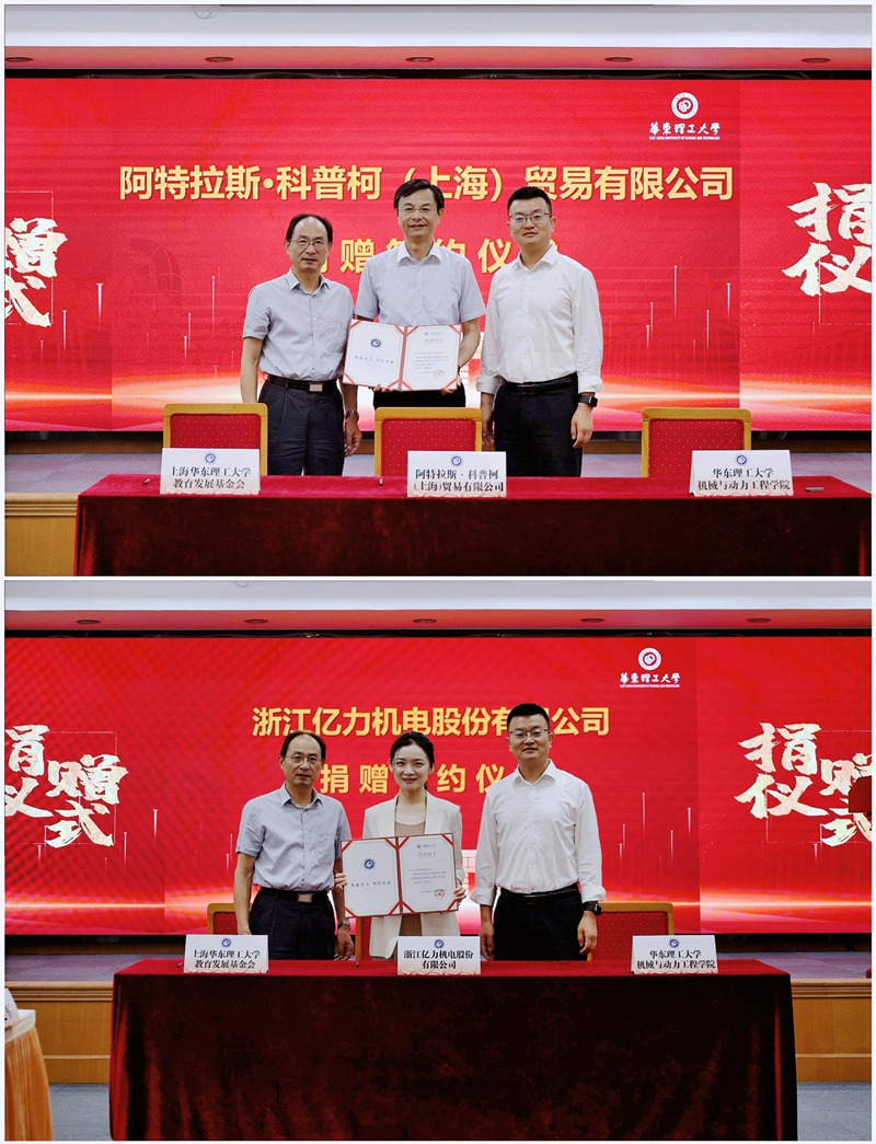9月6日,yl88858cc永利官网在我校徐汇校区逸夫楼演讲厅举行集体捐赠签约仪式。阿特拉斯·科普柯(上海)贸易有限公司总经理刘宇镝,浙江亿力机电股份有限公司人力资源总监黄佳倩,yl88858cc永利官网校友与发展联络处处长、上海yl88858cc永利官网教育发展基金会秘书长李建伟,yl88858cc永利官网党委书记杨强出席活动。捐赠仪式由yl88858cc永利官网副院长易建军主持。