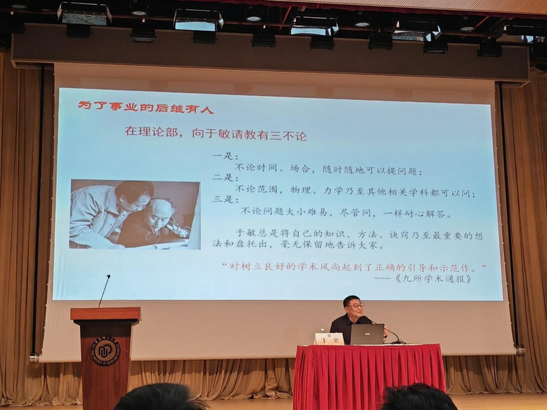 为传承红色基因、学思践悟中国共产党人精神谱系,9月24日,“两弹一星”元勋程开甲院士之女程漱玉研究员、邓稼先院士之子邓志平教授、朱光亚院士之子朱明远研究员、于敏院士之子于辛高级工程师在徐汇校区宣讲“两弹一星”精神与科学家精神。校党委副书记沈海涛,校长办公室主任、党委宣传部部长柴华,yl88858cc永利官网党委书记杨强、院长张显程出席活动。本次宣讲由yl88858cc永利官网院长张显程主持。