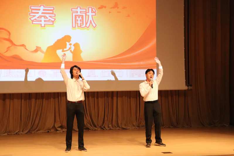 李煜佳介绍了退休教师近年来为学院发展做出的诸多贡献。她指出,老教师们退休不褪色,积极参加学校开展的学生主题党课、学院创新大赛、教务、招生等教学督导工作和廉洁文化作品征集、老中青乒乓球联谊赛等活动,为学院发展和学生成长成才奉献力量。她还展出了退休教师的诗作、书法、画作、摄影、短视频和文章等富有诗情雅趣的作品,退休教师对生活的热爱,感染和激励了在场师生,并赢得了阵阵掌声。学生代表们精心准备了诗词朗诵和歌唱节目,一首合唱曲目《奉献》更是将现场气氛推向高潮。