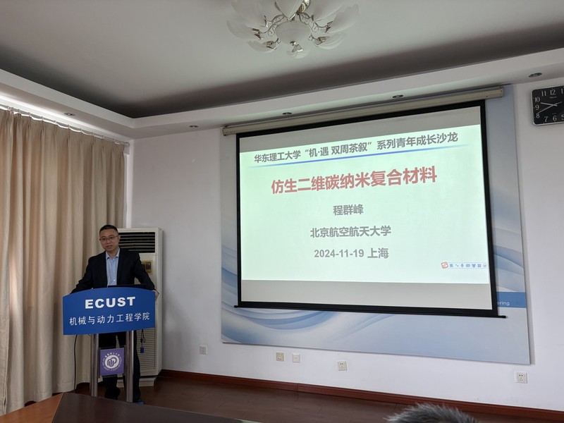 11月19日上午,“机·遇 双周茶叙”系列青年成长沙龙(第二十期)在徐汇校区举行。本次活动邀请了北京航空航天大学化学学院程群峰教授作题为“仿生二维碳纳米复合材料”的学术报告。yl88858cc永利官网副院长白志山、张博威特聘研究员、王涛特聘副研究员、化学与分子工程学院张斌副教授等多位老师以及硕博士研究生参与了本次活动。