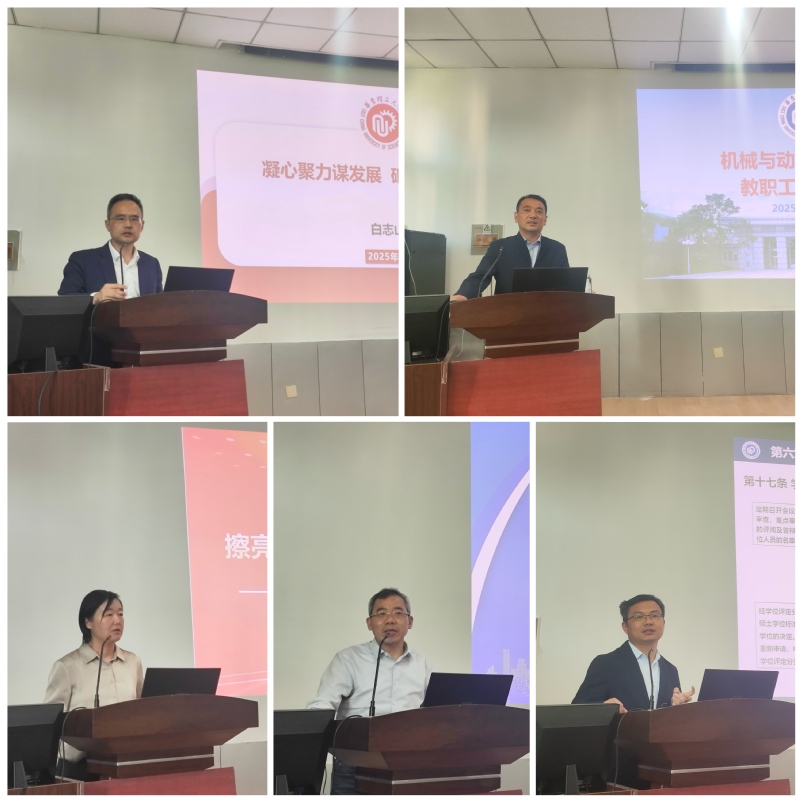 党委副书记李煜佳以“擦亮新时代党的建设金色名片”为题,阐述了深入贯彻中央八项规定精神学习教育、推进作风建设的重要性,领读了习近平总书记的重要讲话和重要指示精神,运用了典型案例警示,引导党员干部深刻反思,并要求学院教职工结合教育工作实际,把学习教育成果转化为学院高质量建设发展的具体行动和实际成效。副院长易建军作了题为“警钟长鸣:安全无小事”的专题报告,从案例警示、风险识别、预防为先、应急有方等4个方面强调了要提高风险意识,落实规章制度,严肃安全纪律,安安全全完成各项科研和学习工作。副院长朱明亮作了题为“新修订学位管理系列文件要点的通报”的专题报告,从学位评定、学位授予、研究生学位论文(实践成果)匿名评审等方面详细解读了学位评定委员会章程、学位质量保障等关键要点。