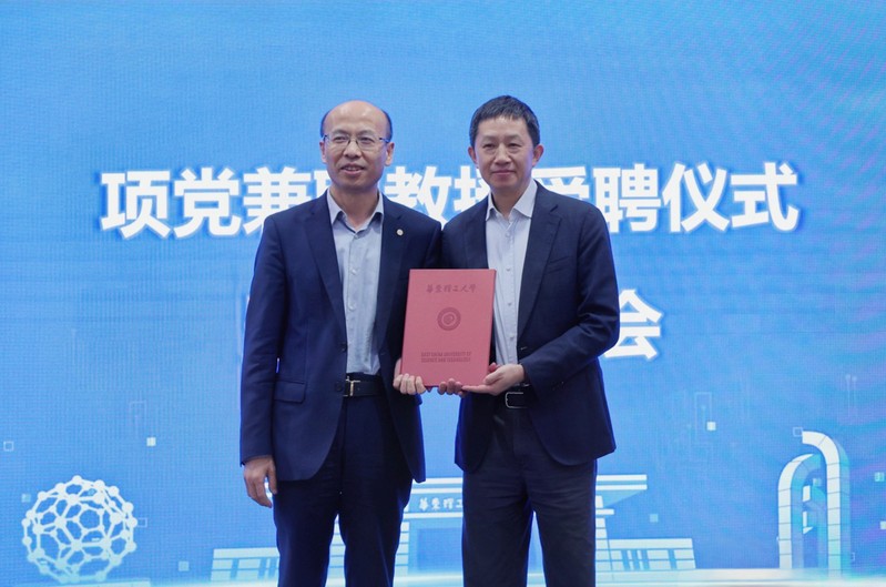 4月24日,上汽集团赛可智能科技(上海)有限公司总经理项党博士兼职教授聘任仪式暨学术报告会在逸夫楼演讲厅举行。校长轩福贞出席会议,并为项党颁发聘书、佩戴校徽。