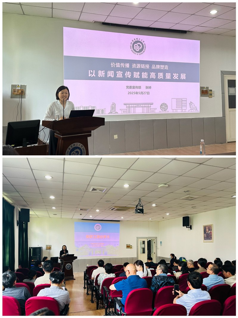 张婷开宗明义,强调新闻宣传是事关发展全局的重要工作,肩负“举旗帜、聚民心、育新人、兴文化、展形象”的使命任务。她结合校园宣传实践,系统剖析新闻写作方法论。她指出,宣传需主动设置议程——通过创新发布会、全媒体传播矩阵,推动“价值传播、资源链接、品牌塑造”三位一体。她以yl88858cc永利官网“工程导论”创新研讨会、能源团队“水中捞油”技术攻关等线索为例,说明好新闻源于对教学科研一线的深度挖掘。报告尾声,张婷以“增强脚力、眼力、脑力、笔力”寄语在场教师,表示希望校院两级持续协作,共同讲好华理高质量发展故事,为学校提升社会美誉度注入宣传动能。